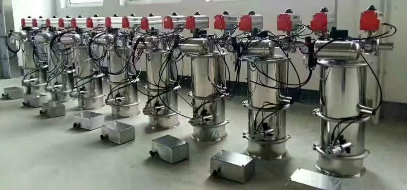 建一智能气动式真空上料机是利用压缩空气通过真空发生器产生高真空实现对物料的输送,不需要机械式真空泵,具有结构简单、体积小、免维修、噪音低、控制方便、消除物料静电和符合GMP要求等优点。真空发生器产生的高真空,使被输送的物料杜绝了分层现象,保证了混合物料成份的均一性,是压片机、胶囊填充机、干法制粒机、包装机、粉碎机、振动筛等机械自动上料的设备。