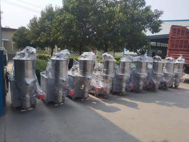 建一智能真空吸料机由真空泵(无油、无水)真空料斗,过滤器(有聚酯覆膜过滤器、PE过滤器、316L不锈钢过滤器或钛金属过滤器多种选择),压缩空饭吹装置,气动放料门装置,料位自动控制装置,不锈钢吸料咀,输送软管等组成,整套系统设计合理,制造精美。