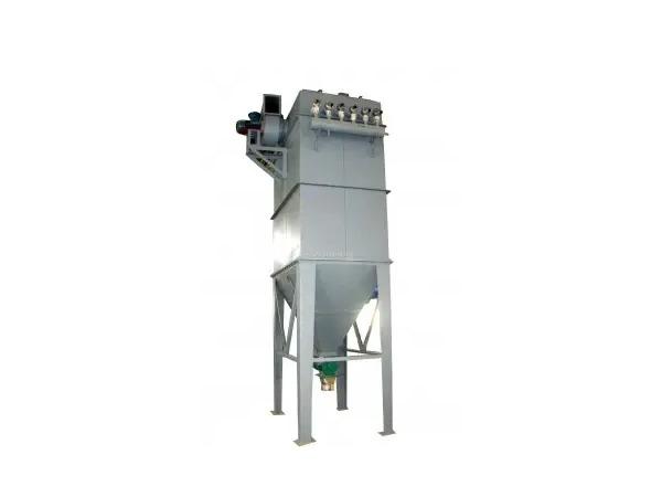 当含尘气体由进风口进入除尘器,首先碰到进出风口中间的斜板及挡板,气流便转向流入灰斗,同时气流速度放慢,由于惯性作用,使气体中粗颗粒粉尘直接流入灰斗。起预收尘的作用,进入灰斗的气流随后折而向上通过内部装有金属骨架的滤袋粉尘被捕集在滤袋的外表面,净化后的气体进入滤袋室上部清洁室,汇集到出风口排出,含尘气体通过滤袋净化的过程中,随着时间的增加而积附在滤袋上的粉尘越来越多,增加滤袋阻力,致使处理风量逐渐减少。